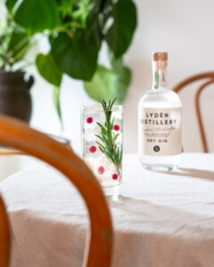 Fyll ditt favoritglas med mycket is, häll över Lydén Distillery Dry Gin och toppa med tonic. Garnera med lingon och rosmarin.